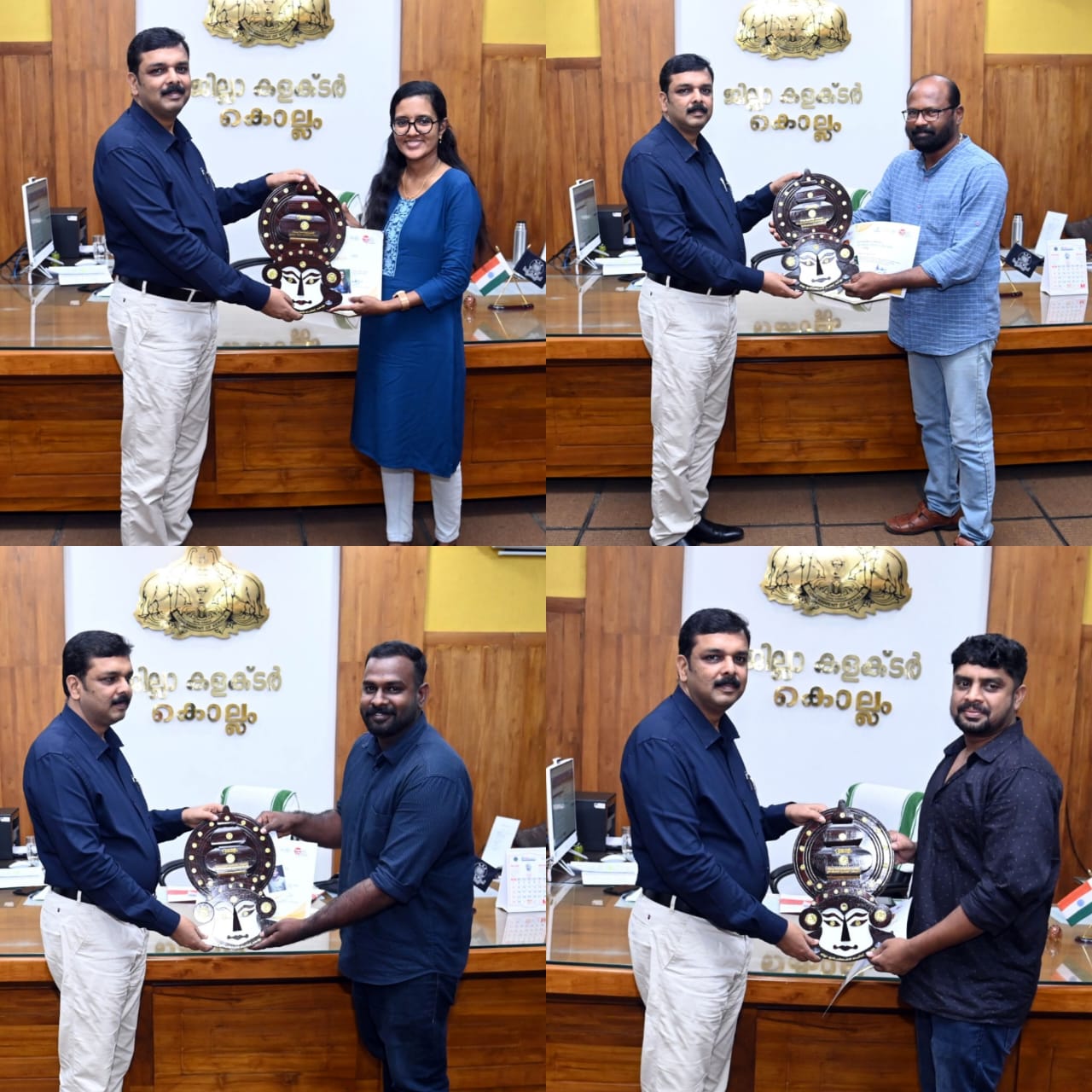 കൊല്ലം:സംസ്ഥാന സര്ക്കാരിന്റെ നാലാം വാര്ഷികത്തിന്റെ ഭാഗമായി സംഘടിപ്പിച്ച എന്റെ കേരളം പ്രദര്ശന വിപണനമേളയോടനുബന്ധിച്ച് ഏര്പ്പെടുത്തിയ മാധ്യമ പുരസ്കാരങ്ങള് ജില്ലാ കലക്ടര് എന്.ദേവിദാസ് ചേമ്പറില് സമ്മാനിച്ചു.