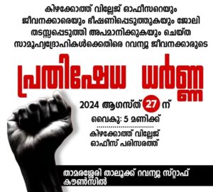 താമരശ്ശേരി താലൂക്ക് സ്റ്റാഫ് കൗൺസിൽ പ്രസിഡന്റ് കെ നിസാമുദ്ദീൻ ഉദ്ഘാടനം ചെയ്തു. സി.ധന്യ അധ്യക്ഷത വഹിച്ചു. ടി. എം സജീന്ദ്രൻ, ടി. സുബൈർ എന്നിവർ സംസാരിച്ചു.